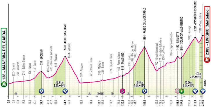 The key sections included the grueling ascent of the mythical Passo del Mortirolo and the final, punishing climb to Livigno, which is divided into two climbs, Passo di Foscagno and Mottolino. These segments were anticipated to be the decisive moments of the stage, offering a perfect battleground for climbers to make their mark.